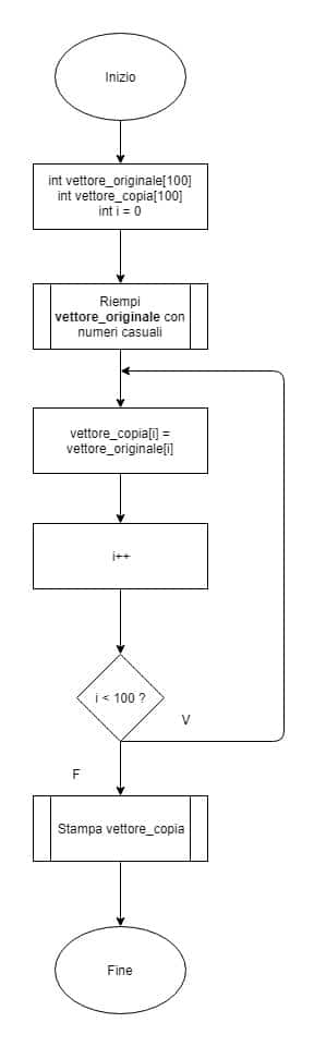 - Leggere progressivamente i numeri contenuti nel vettore originale e copiarli nel vettore copia;